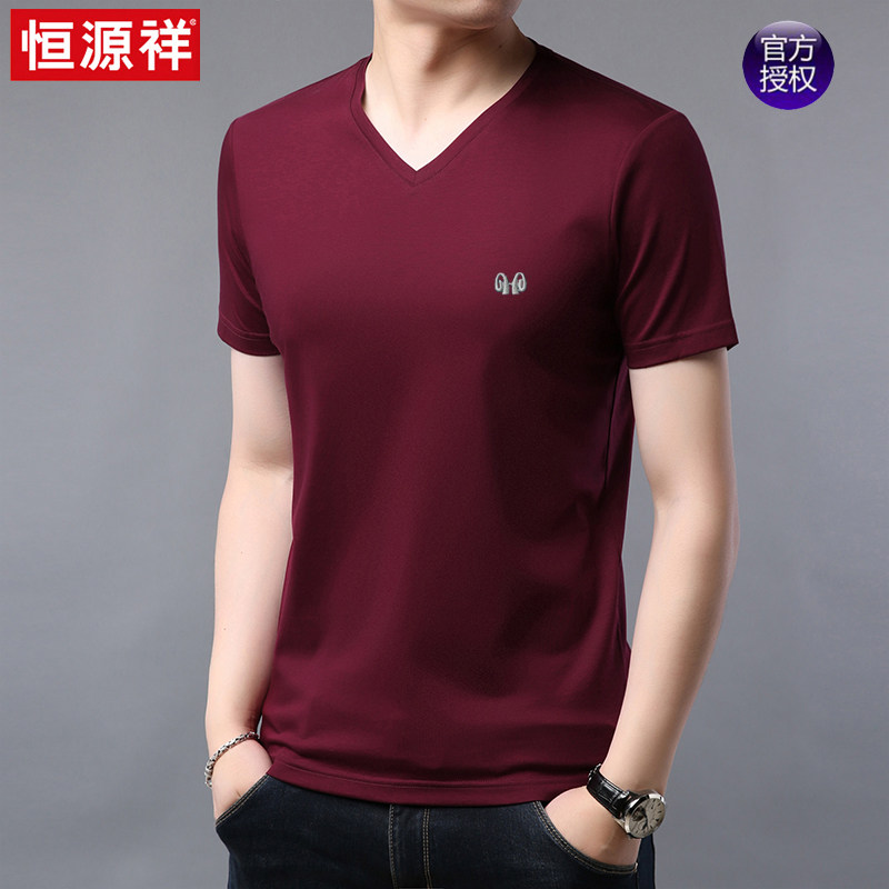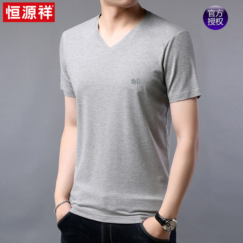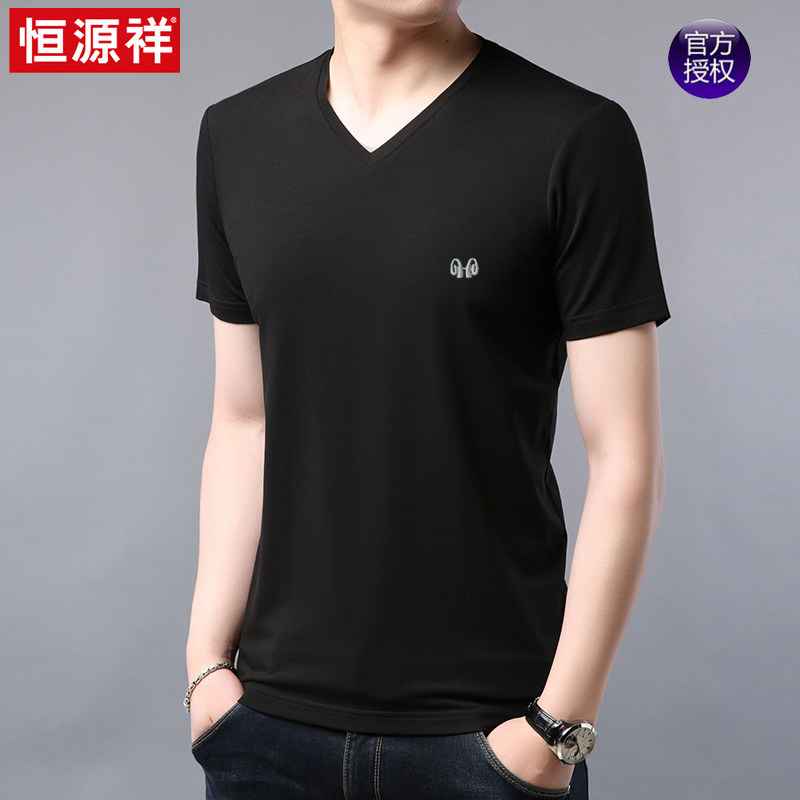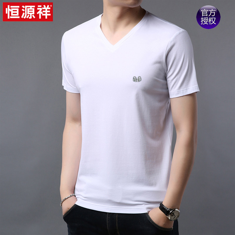 Hengyuanxiang summer V-neck short-sleeved T-shirt men's mercerized cotton solid color V-neck base shirt Hong Kong wind business men's fashion trend