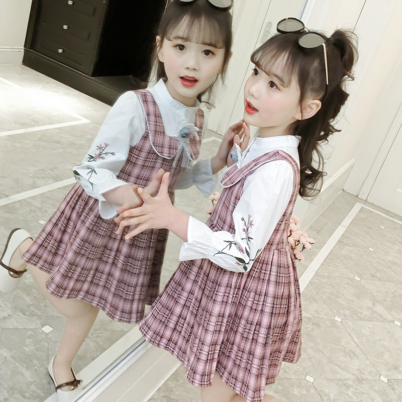 Girls' autumn dress suit 2021 new Korean version of the children's Western style plaid skirt fashion shirt two-piece tide