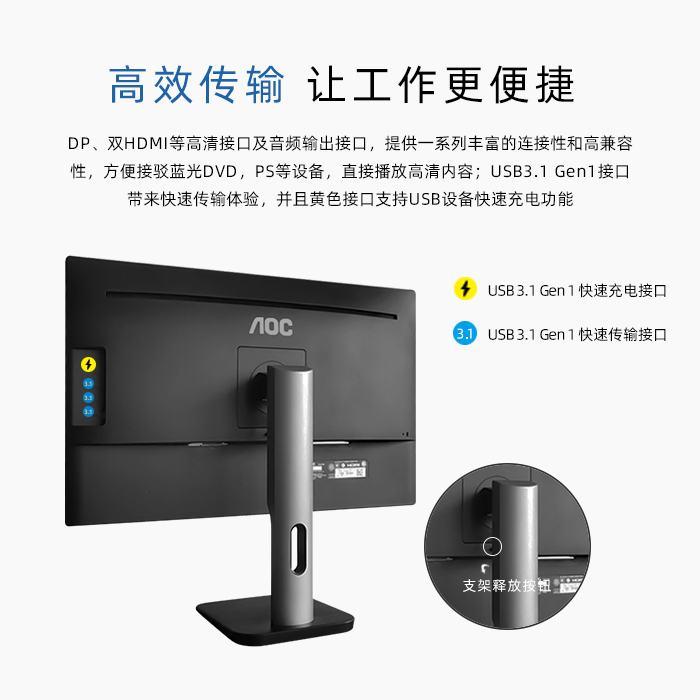 AOC Q27P1U 27 inch 2K HD IPS screen Q2789VQ game design desktop lift LCD monitor