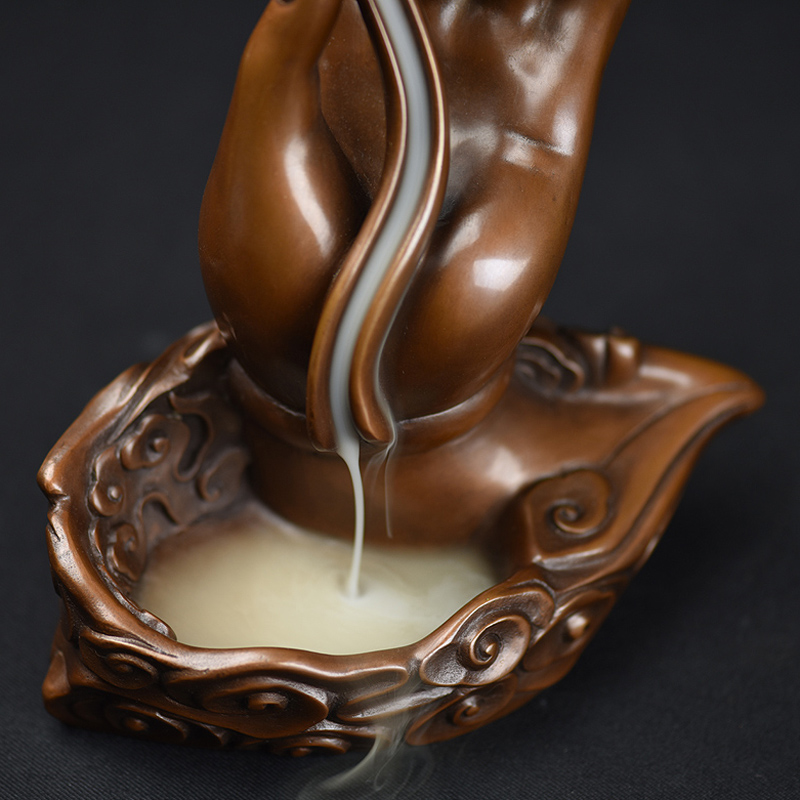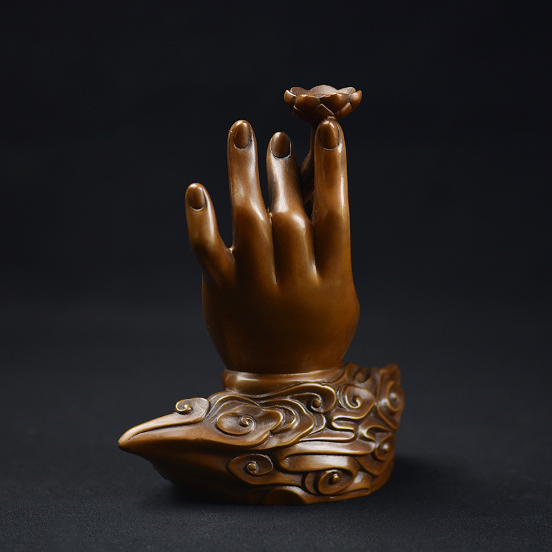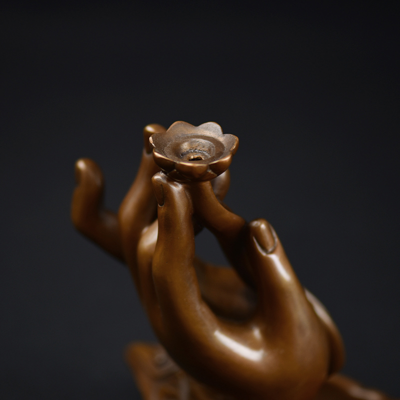Banderas pure copper back-turned incense stove creative red copper Guanyin pendulum piece bronze incense stove lotus Buddha hand smoke incense smoke stove