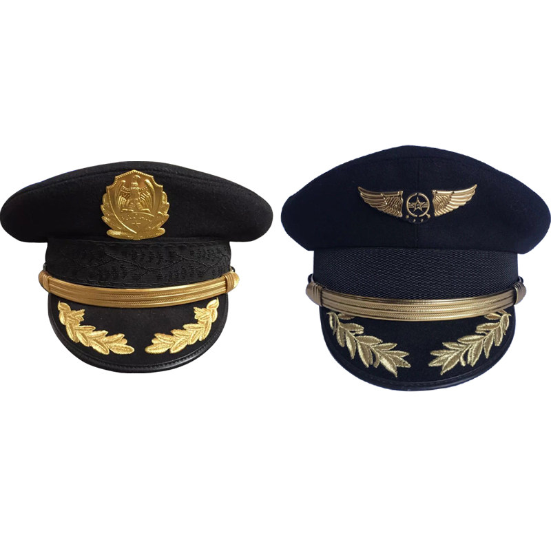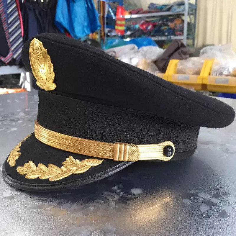 Captain hat security big cap pilot hat male black woolen fabric property big brim hat pilot hat