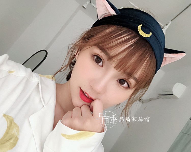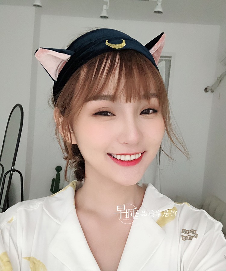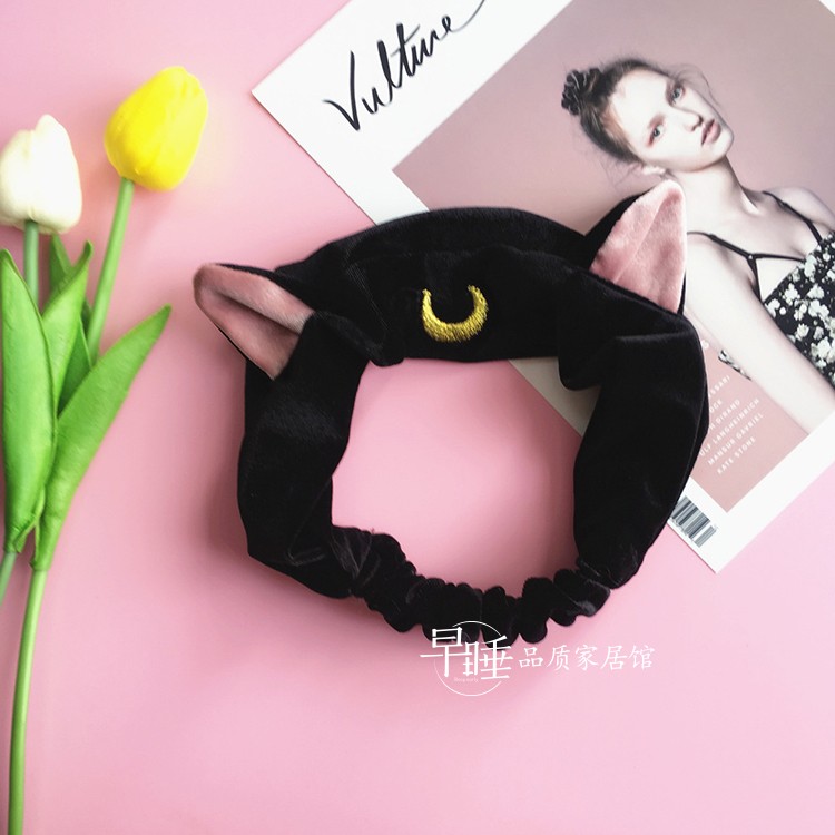 Japanese cartoon soft cat ear wash face beam with water ice moon hair band