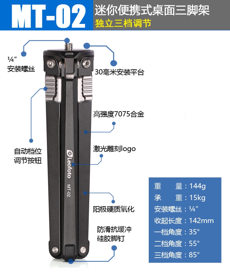 leofoto MT-02 LH-25 Mini Portable Desktop Travel Tripod Gimbal Single Eye Micro SLR Camera