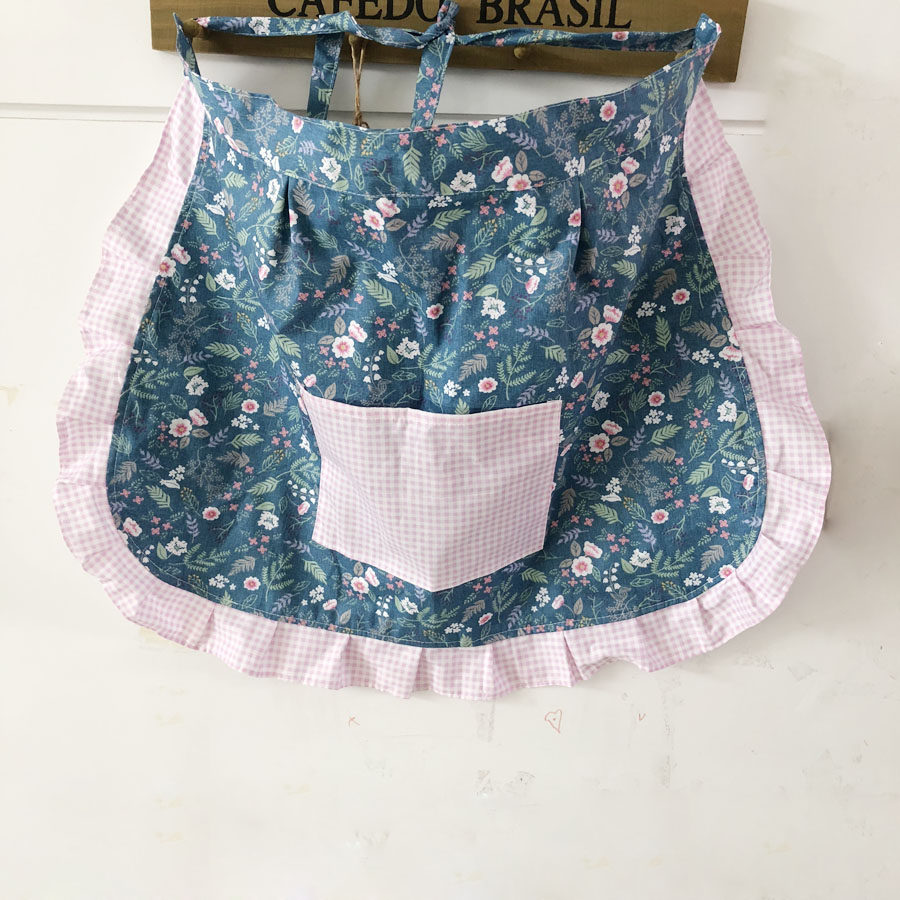 Pure cotton sleeveless adult overcoat Anti-fouling housework cleaning Pastoral wind half-body apron cute lady fungus edge waist