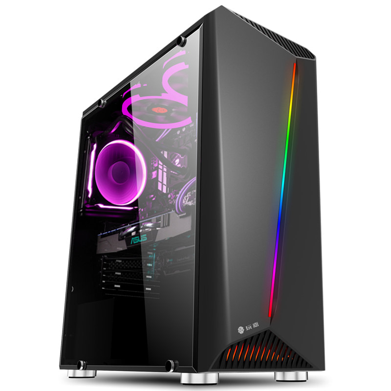 Play Jia rainbow desktop computer case RGB light bar USB3 0 full side tempered glass transparent water-cooled main case