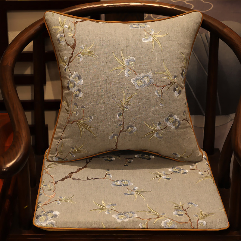 New Chinese style cotton and linen embroidery Taishi chair ring chair cushion mahogany sofa furniture tea chair linen cushion custom