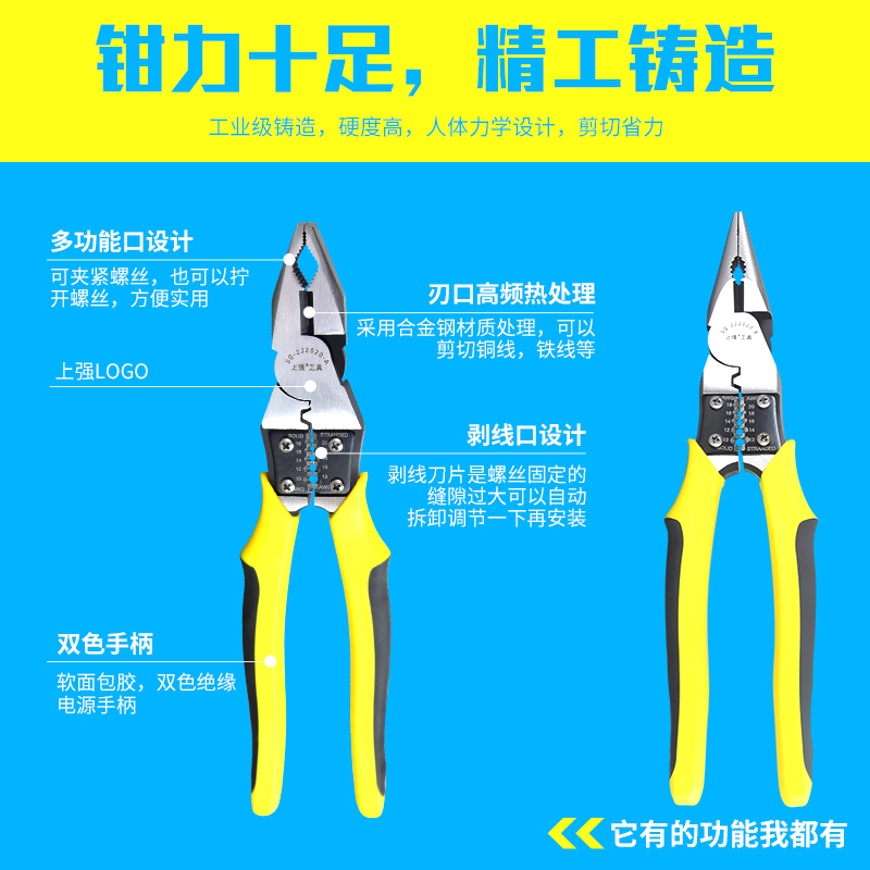 Multi-functional steel wire pliers multifunctional sharp mouth pliers multifunctional pliers two pieces