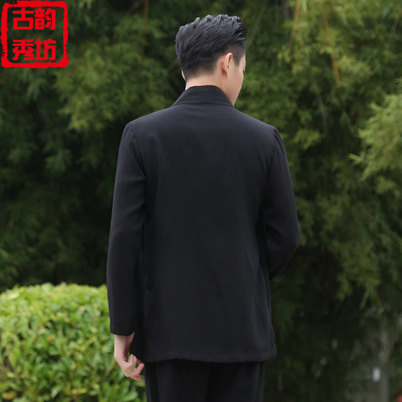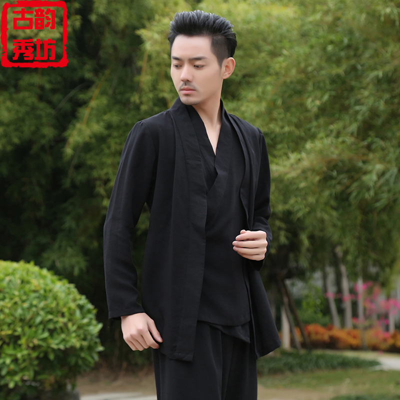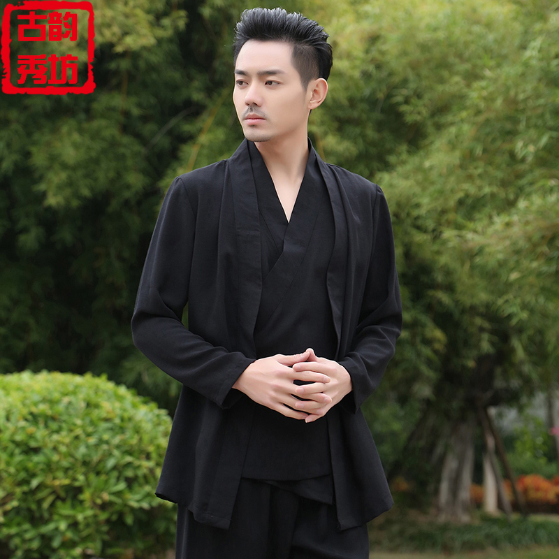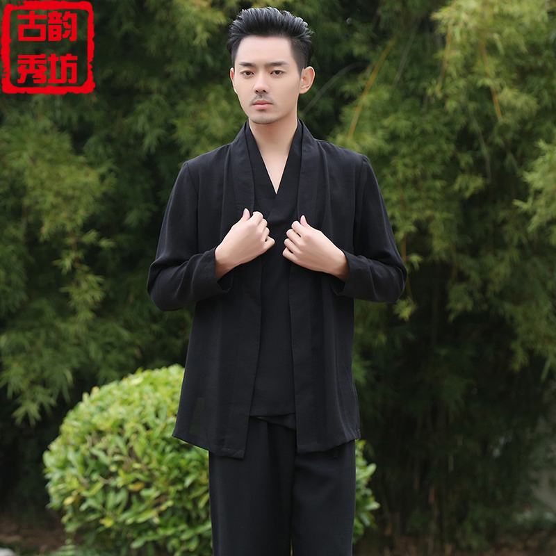 Hanfu Jacket Men's Loose Fake Two Pieces Retro China Air Duct Gown Clothes Cotton Numb Youth Tang Dress Meditation Conqueror