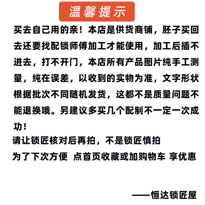 Medium length by key blanks of various key blanks sub-key blank cylindrical semicircle stiletto