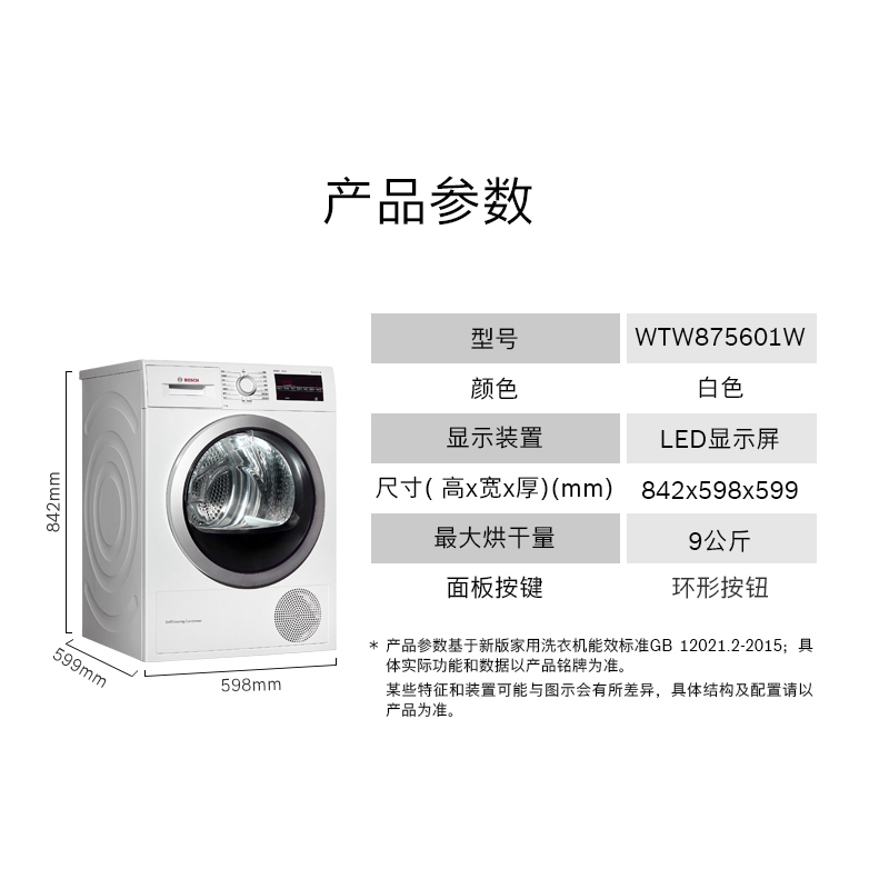 Bosch Bosch imported 9 kg drum sterilization dryer Heat pump dryer Household WTW875601W