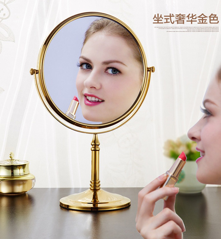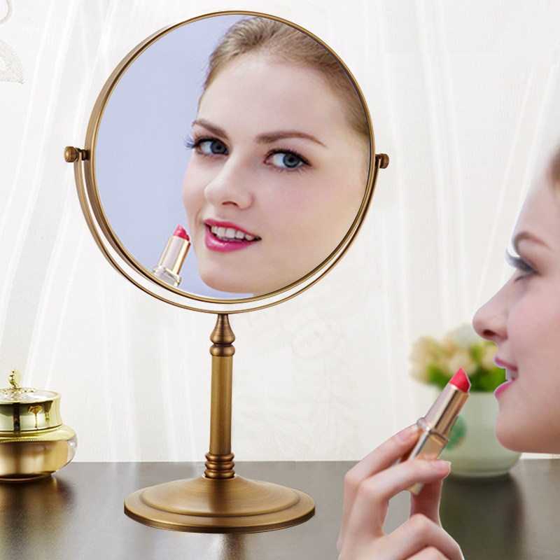 Antique Beauty Mirror Bathroom Makeup Mirror Bedroom Desktop Upright Makeup Mirror Swivel Bifacial Triple Magnified Bathroom Mirror
