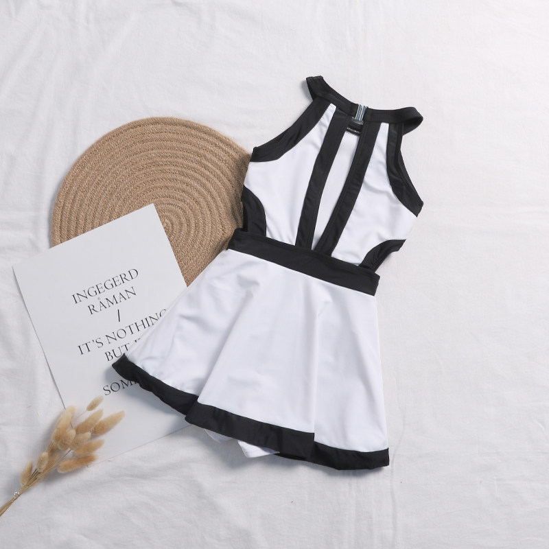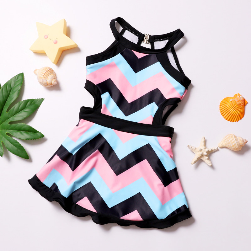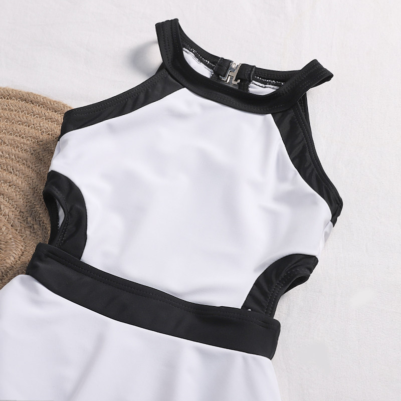 2020 new small fairy children parquet women in swimsuit women's swimsuit Korean black white high collar dress style
