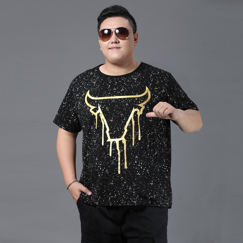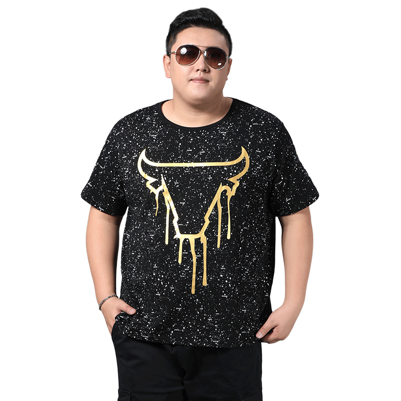 (Broken size can be returned and exchanged) Tide brand large size bull head print short-sleeved T-shirt breathable fat fat plus loose
