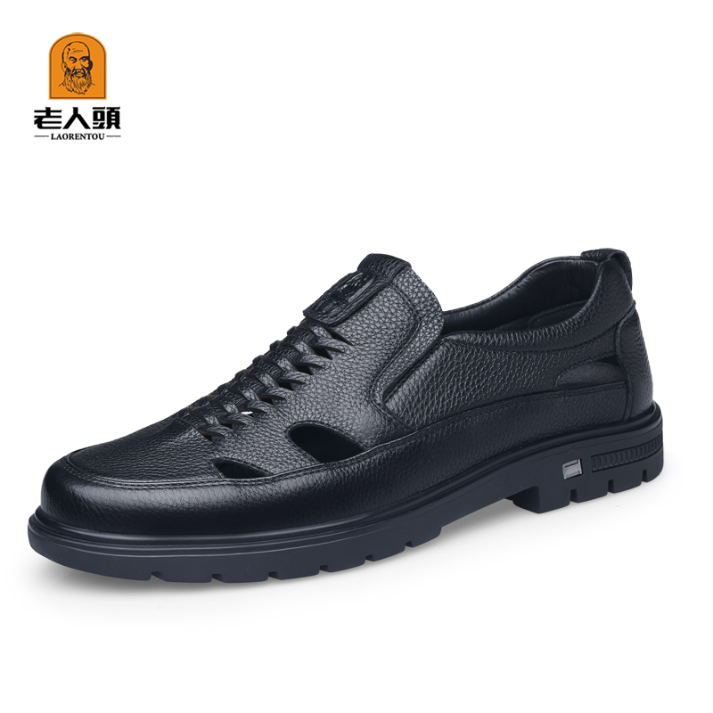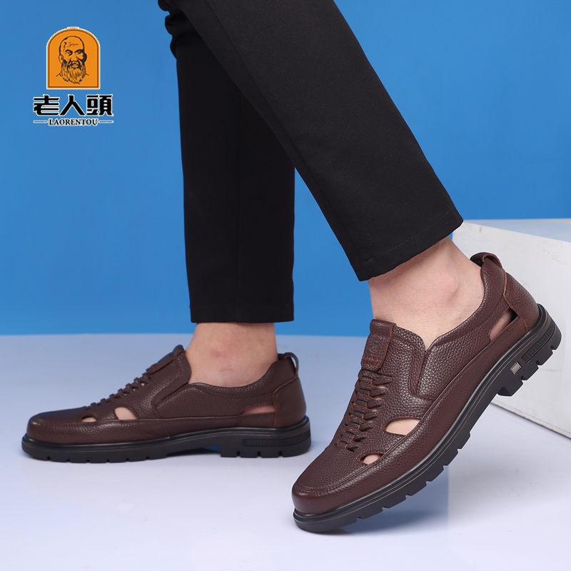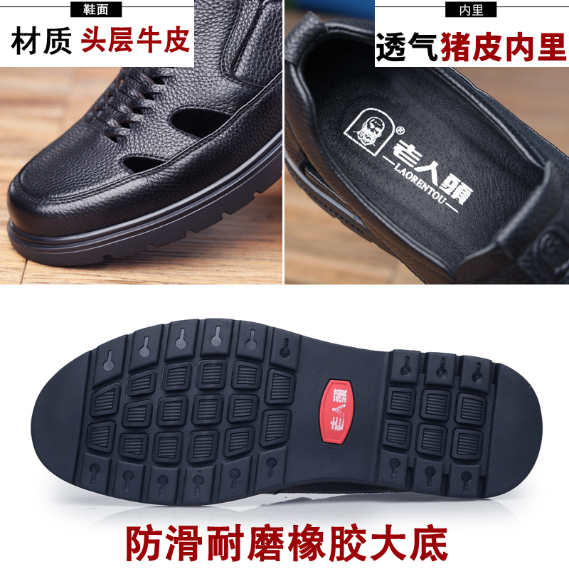 Old man's head dad shoes summer men's leather sandals leather non-slip casual middle-aged and elderly sandals shoes breathable hollow