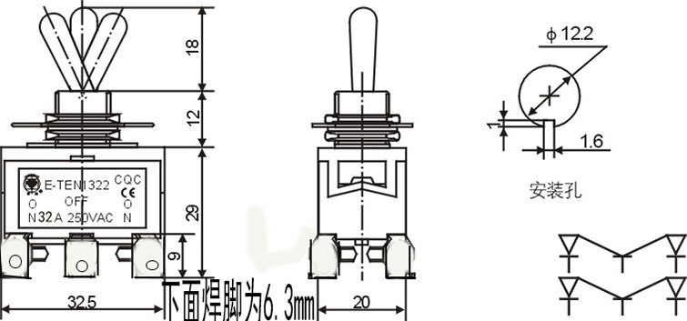Red Hearts Button Subswitch 6 Foot 3 Gear 32A Switch Among stop 2 side switches on-off-on boreholes 12mm Three stalls