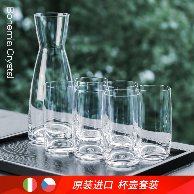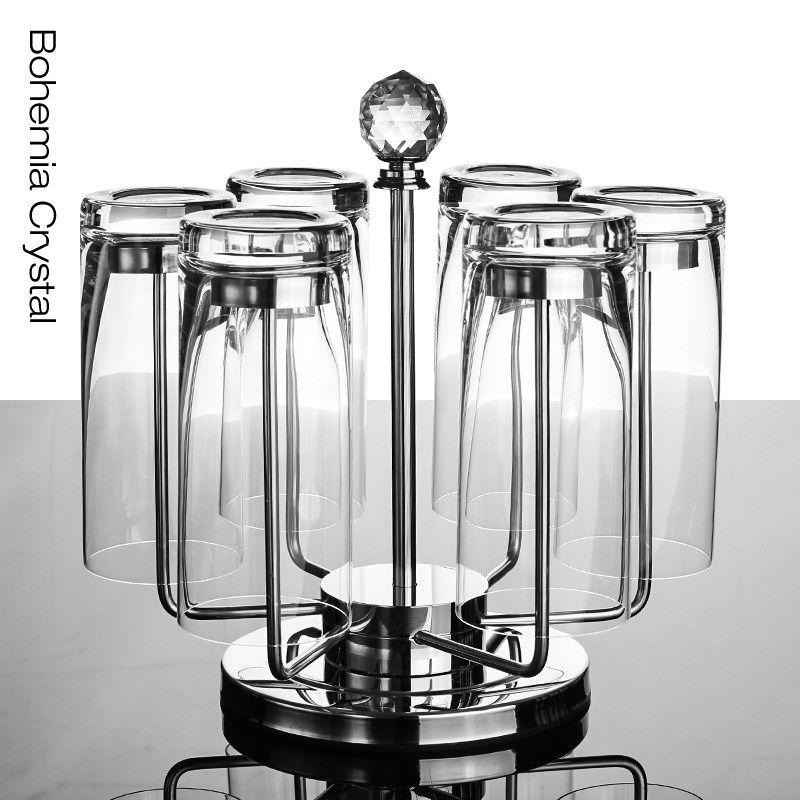 Imported European crystal glass set 6pcs household living room drinking cup Tea set gift box with cup holder