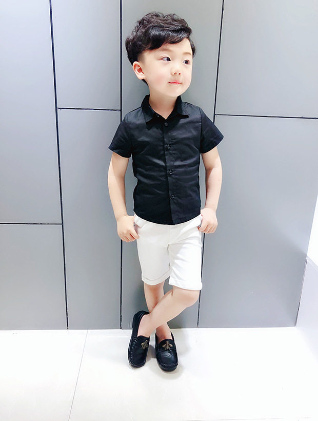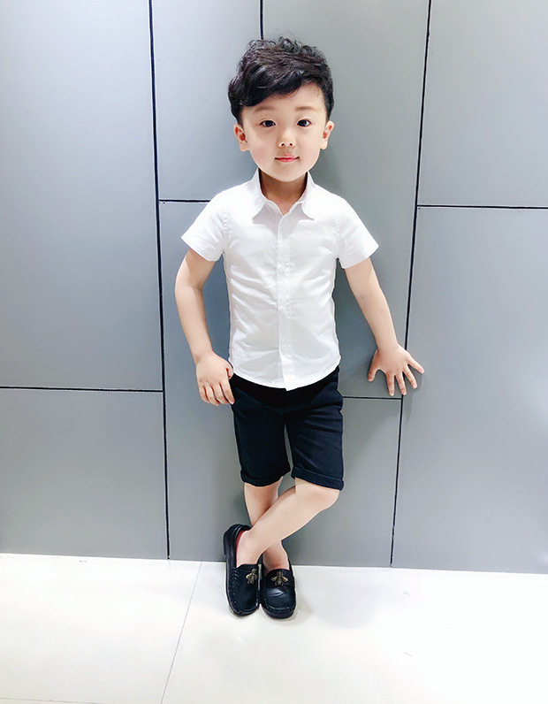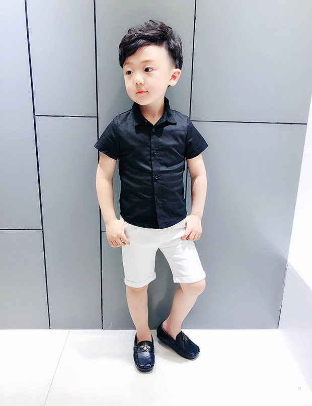 Boys' short sleeve shirt Summer children's pure cotton shirt with solid color backing Boys' Korean edition top Flower Boy 234,567 years old