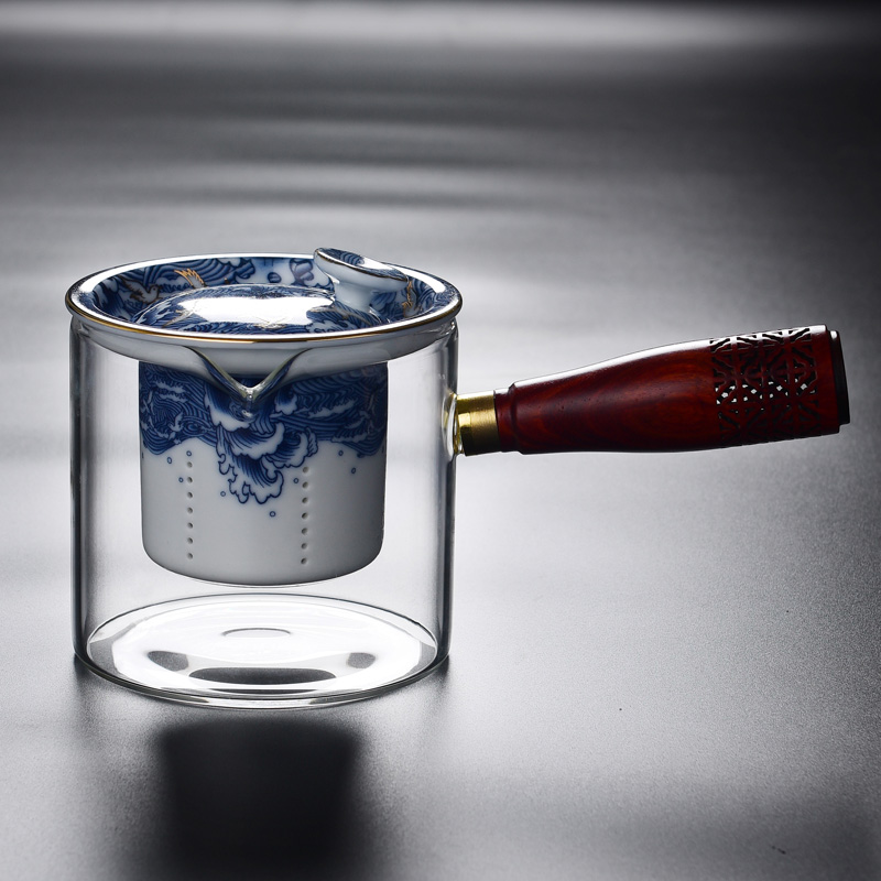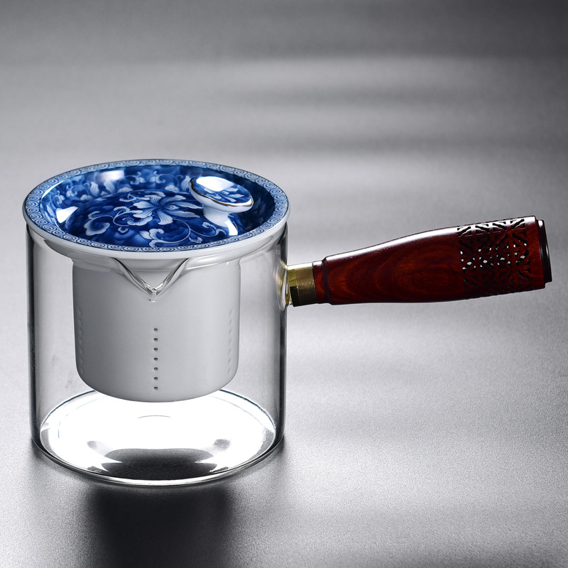 Black Crystal Furnace Boiling Tea Instrumental Bubble Teapot Sets High Temperature Resistant Thickened Glass Wood Handle Side To Cook Teapot Ceramic Liner