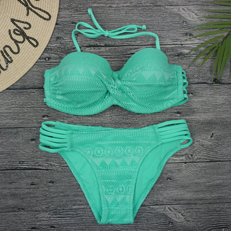 Knitted hollow sexy split triangle Korean fashion steel tow bikini bikini swimsuit swimsuit catwalk beach