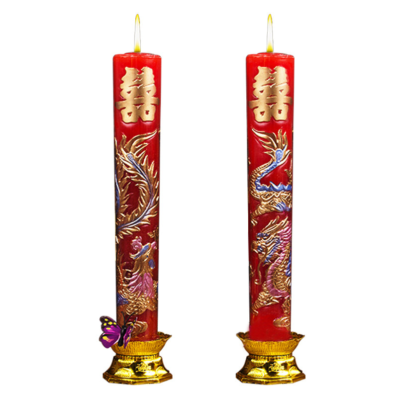Wedding candles A pair of dragon and phoenix candles Wedding windproof red candles Festive large romantic smoke-free wedding candle cup supplies