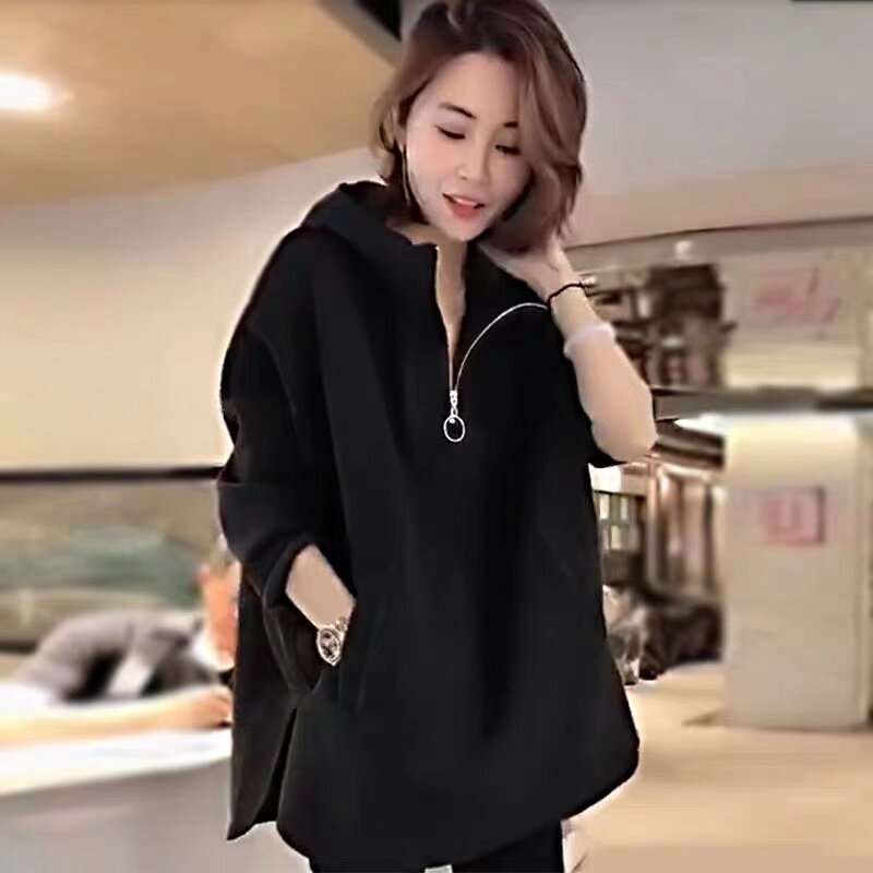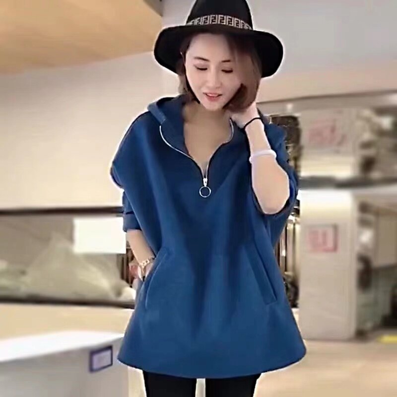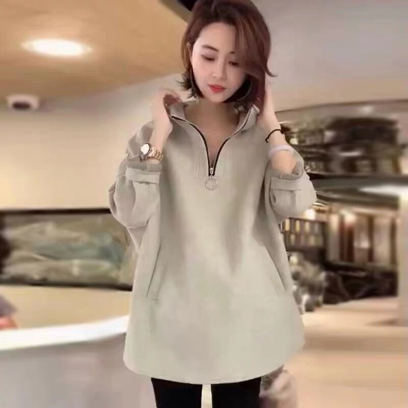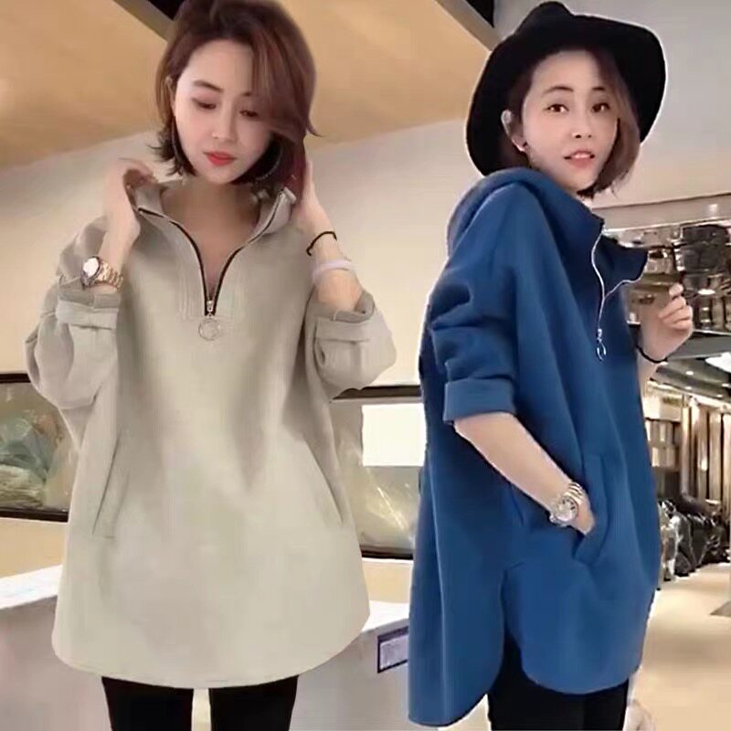 European Station 2020 new Lianhood sportswomen's loose medium long version Long sleeves lazy wind Han version Thin Blouse Women Wave