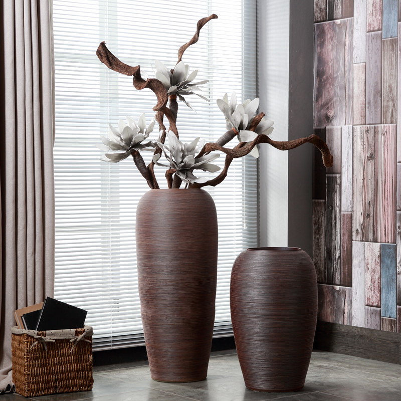Jingdezhen modern minimalist home ceramic vase living room flower arrangement decoration window villa retro floor-to-ceiling large flower pot