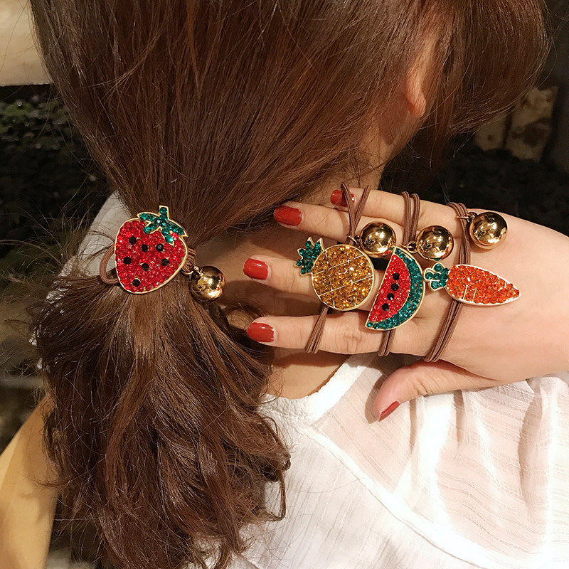 South Korea Dongdaemun Czech drill fruit hair ring watermelon strawberry pineapple hair ring cute ball head rope adult hair accessories