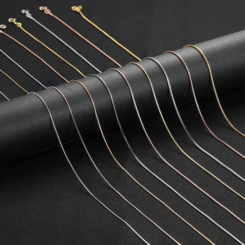 s925 pure silver box chain without pendant nude chain lengthened section lock bone chain 50 50 55 60cm necklace wool dressing chain