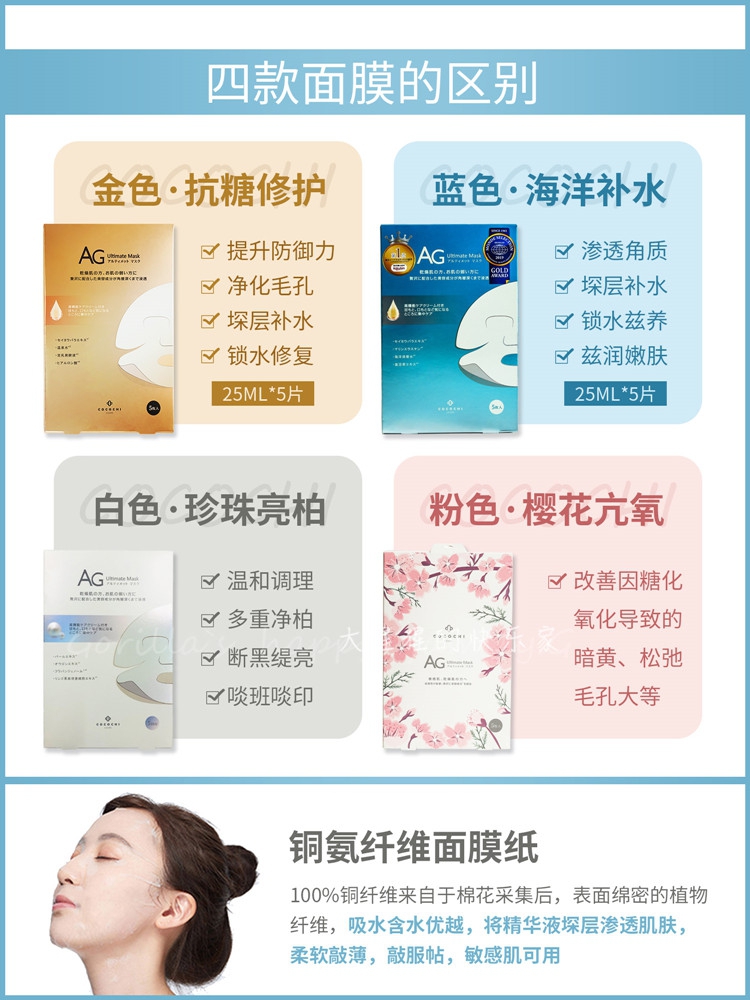 Japan AG anti-sugar mask cocochi official web flagship sleep cherry blossom small egg blue moisturizing ti bright repair