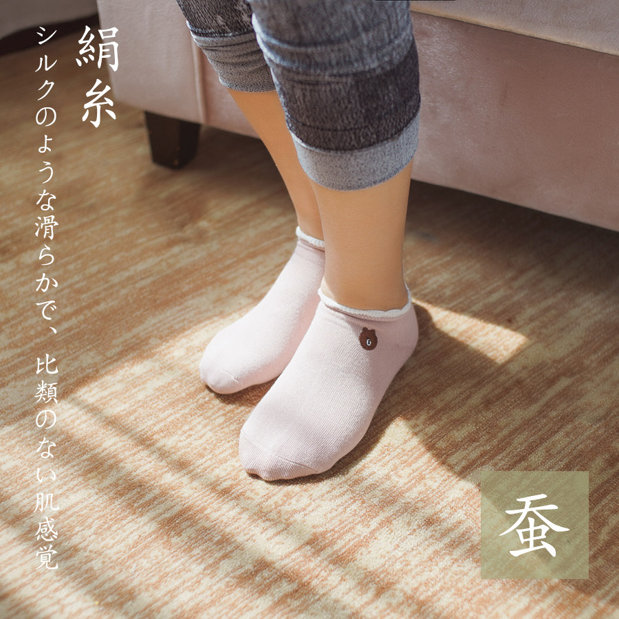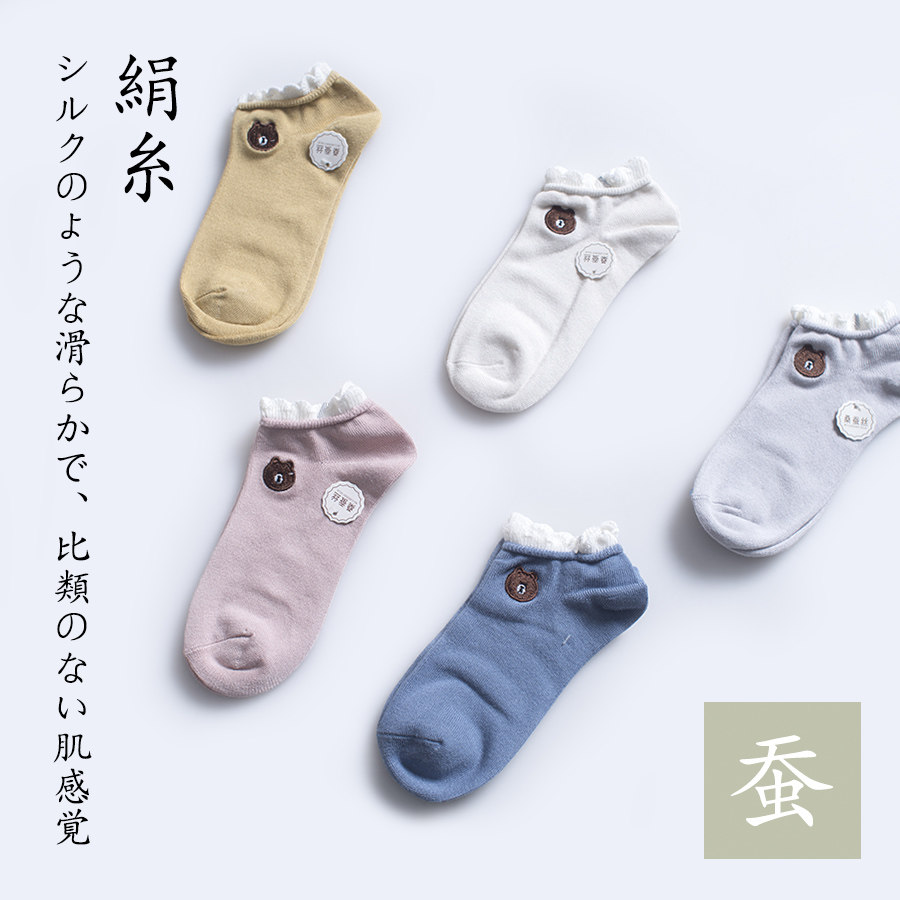 Silk silk bear embroidery silk cotton spring and summer breathable lady short socks cool lace stockings are simple