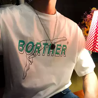 19studio Net red T-shirt tide hip hop retro port flavor loose bf Harajuku wind Korea ulzzang short sleeve men