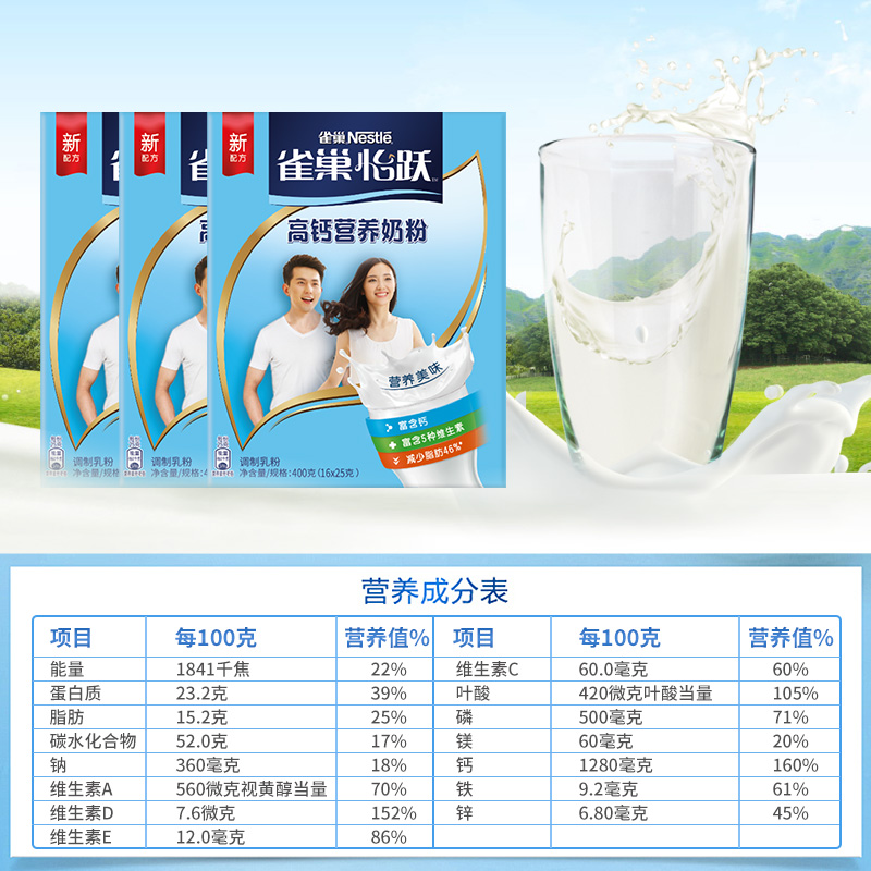 Nestlé Milk Powder High Calcium Nutritional Milk Powder Adult Milk Powder Young Milk Powder 400g Bag * 3