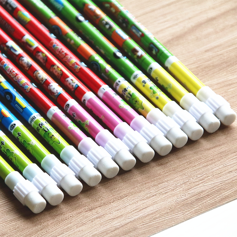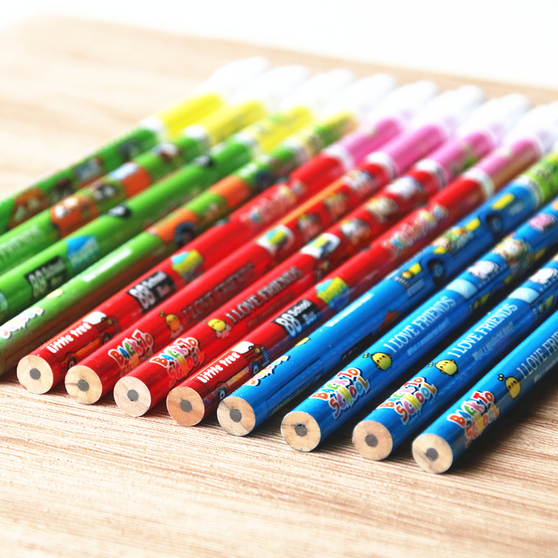 Small sapling children's writing pencil round wooden HB primary school students writing with color rubber bag pencil wholesale