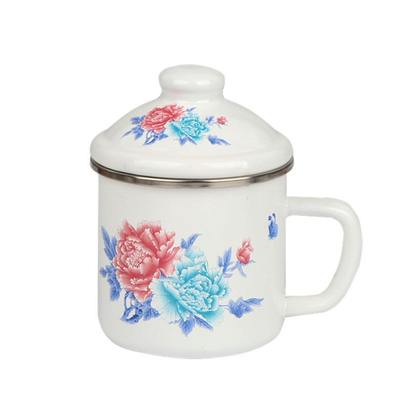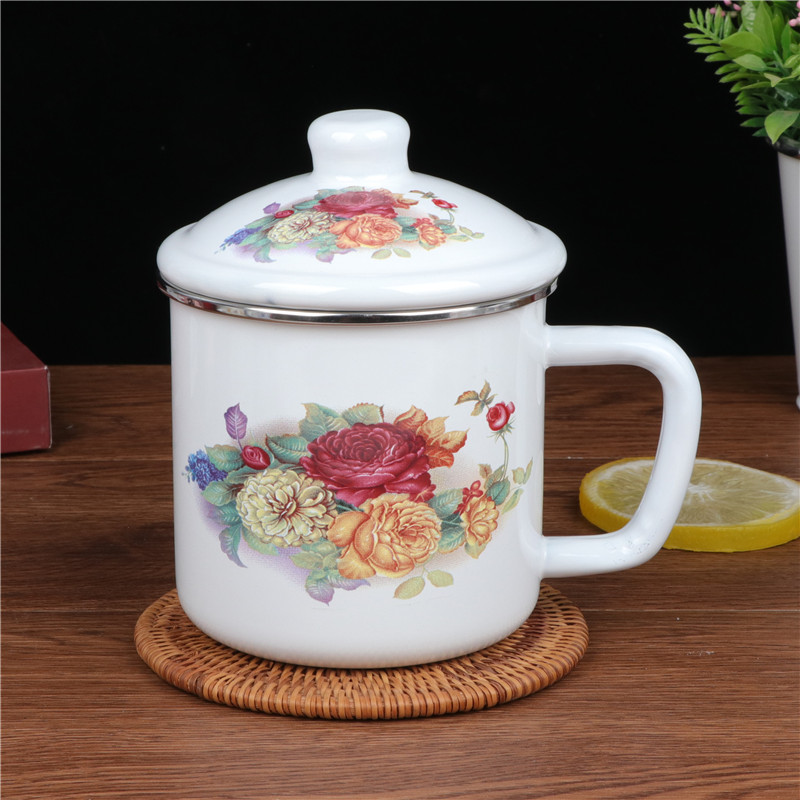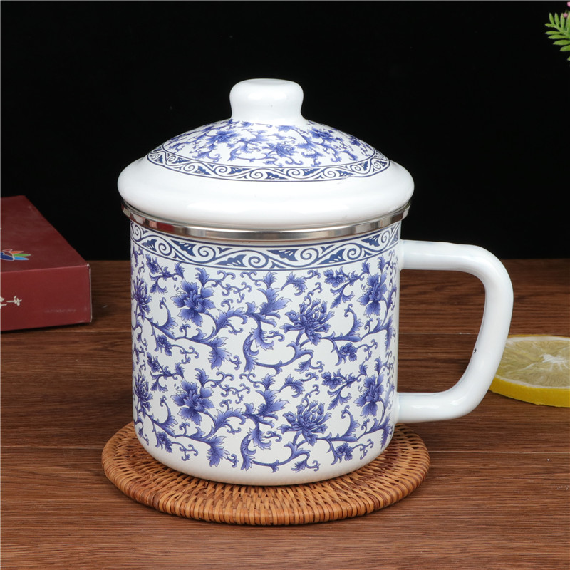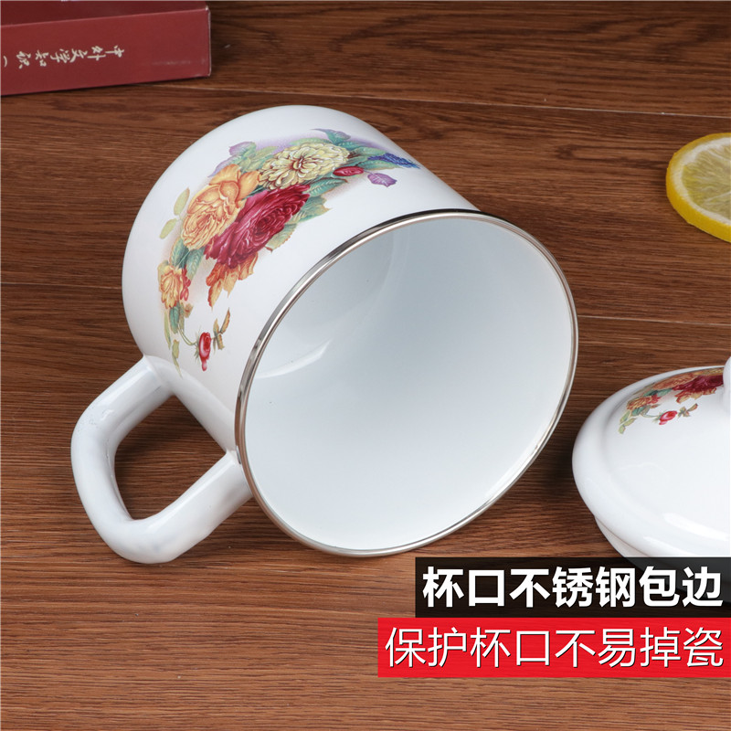 Thickened double material enamel cup Classic nostalgia enamel cover cup water cup tea cup enamel cylinder Milk Cup Accompanying Cup