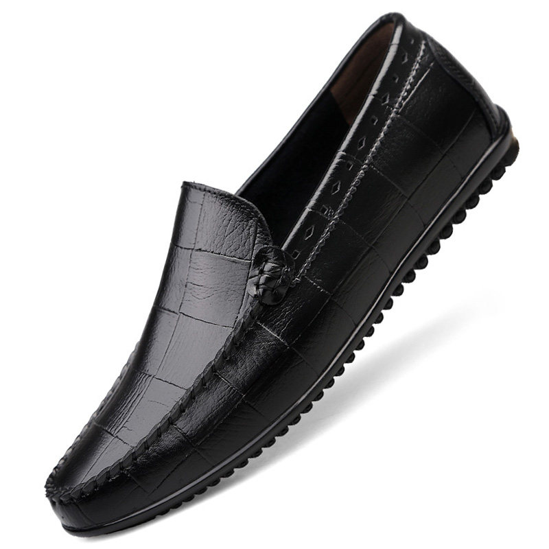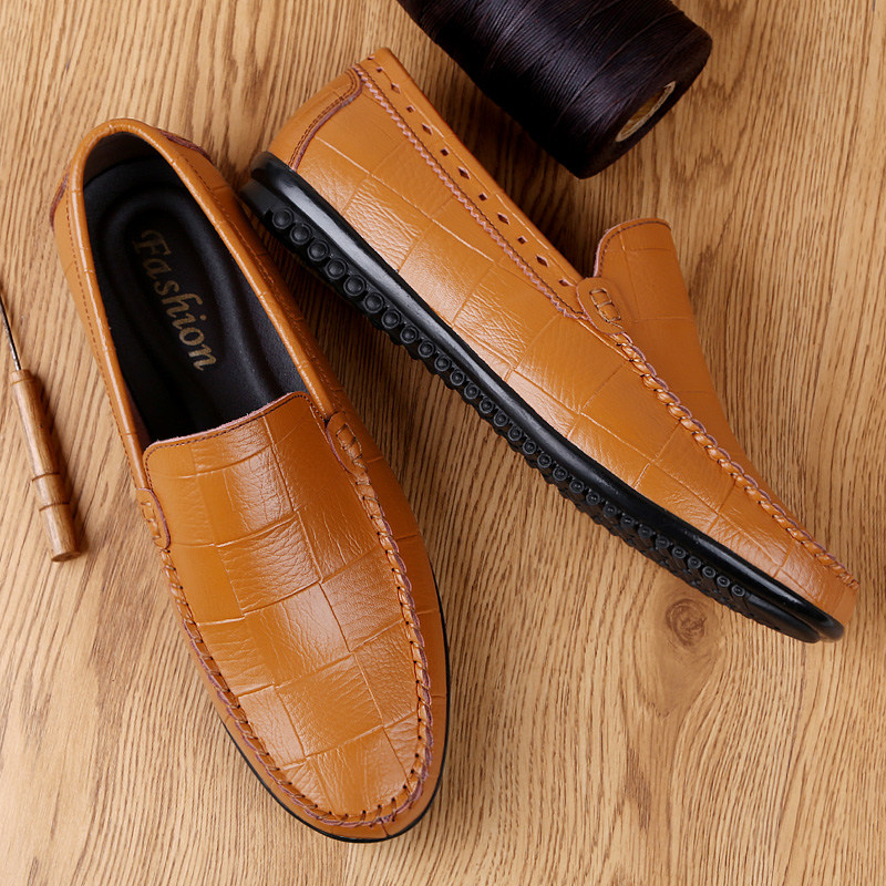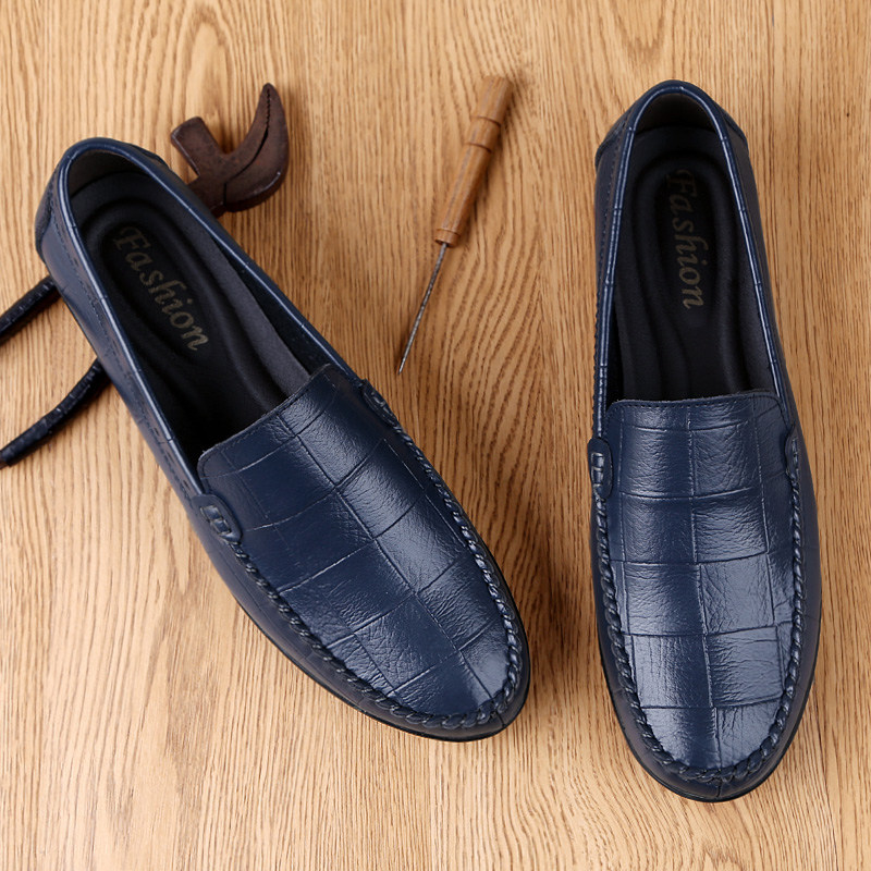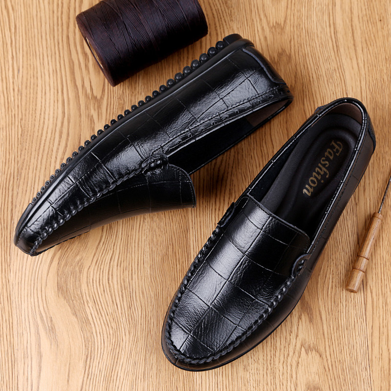 Men's Shoes Summer Men's Hollow Casual Shoes Leather Shoes Korean Version Breathable Lazy Peas Shoes Leather Soft Sole All-match Shoes