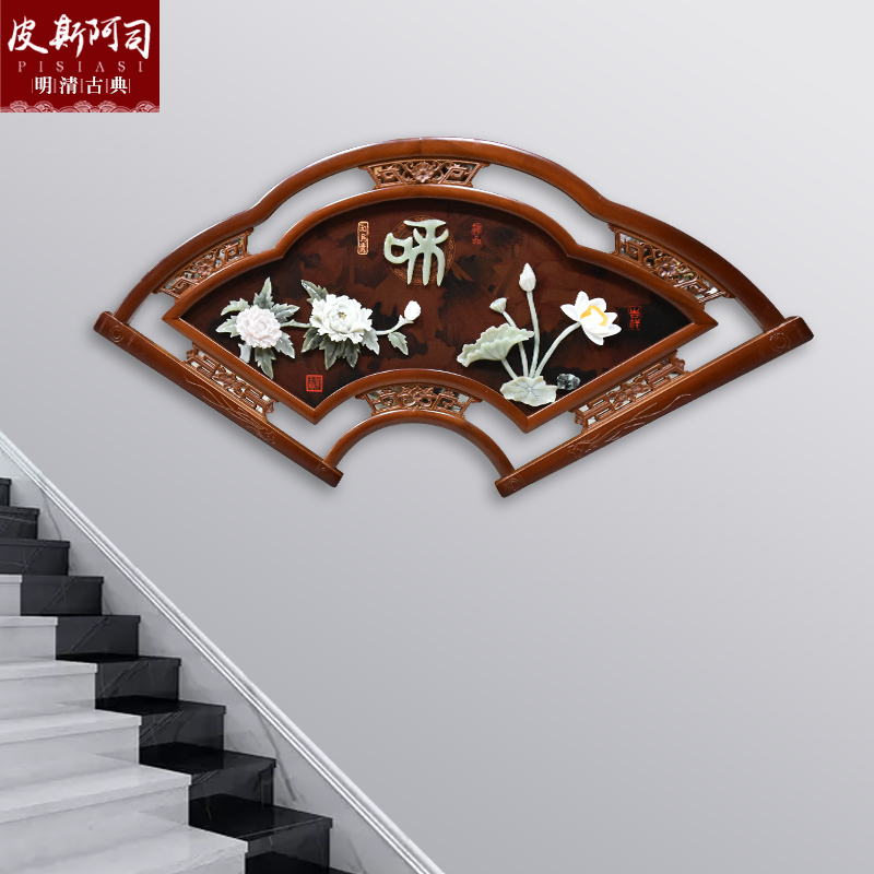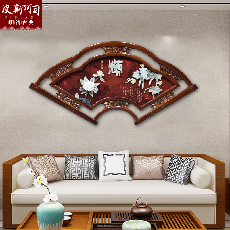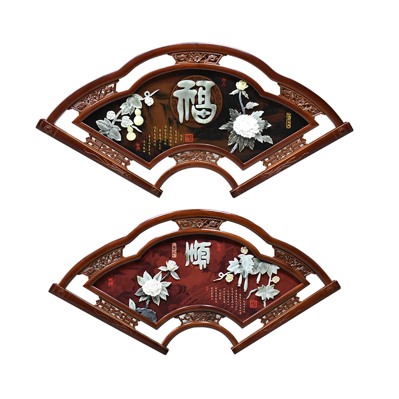 New Chinese style porch jade carving craft fan decorative painting bedroom pendant living room sofa background wall jade carving painting