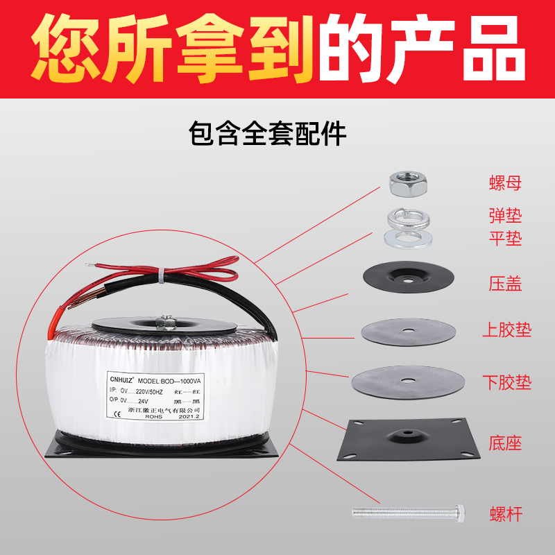 Huizheng high power wall warm toroidal transformer stepper motor ring cattle oxygen-free copper isolated power supply 220 to 24V