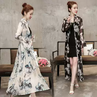 Summer dress Ice Silk long sleeve sunscreen dress female 2021 new exterior wear thin mother foreign pie long version chiffon shirt coat