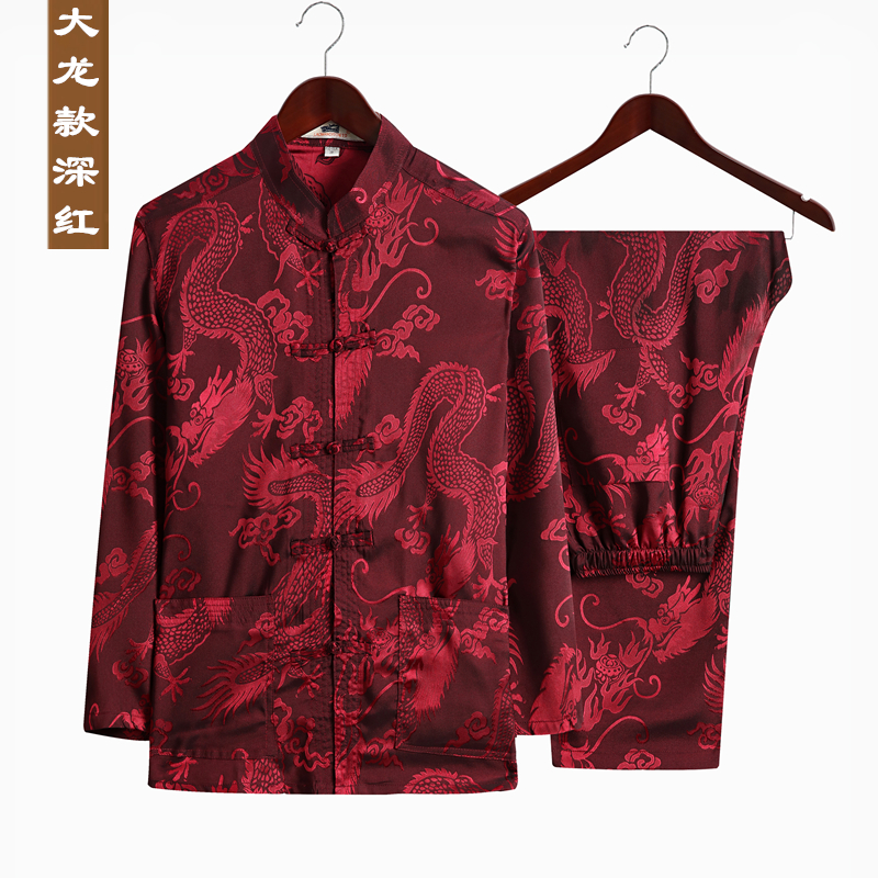 Spring and summer middle and elderly Tang dress men long sleeve suit collar daddy in China wind Chinese large silk shirt