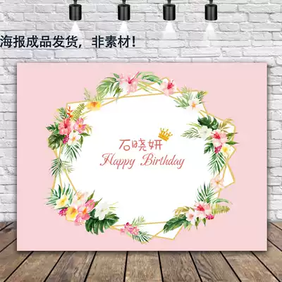 Baby girl birthday party background cloth pink children's first 100-day banquet dessert table decoration poster hanging cloth