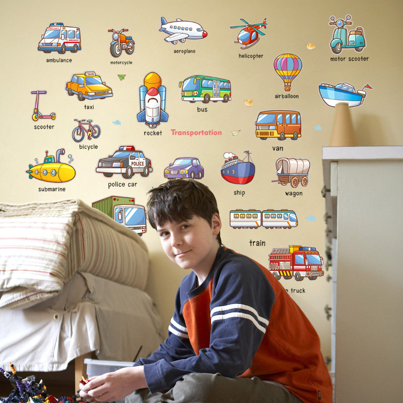 Creative cute self-adhesive children's room decorative wall stickers male treasure room bedroom bed hairpin pass car wall stickers