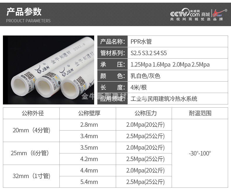 PPR pipe water pipe fittings hot and cold water pipe green home improvement pipe 202532
