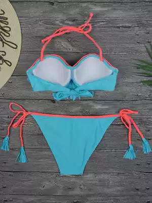 2020 tassel lace-up bikini swimsuit triangle steel frame fashion big chest new bikini large size sexy swimsuit