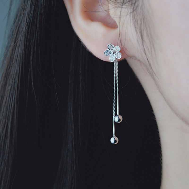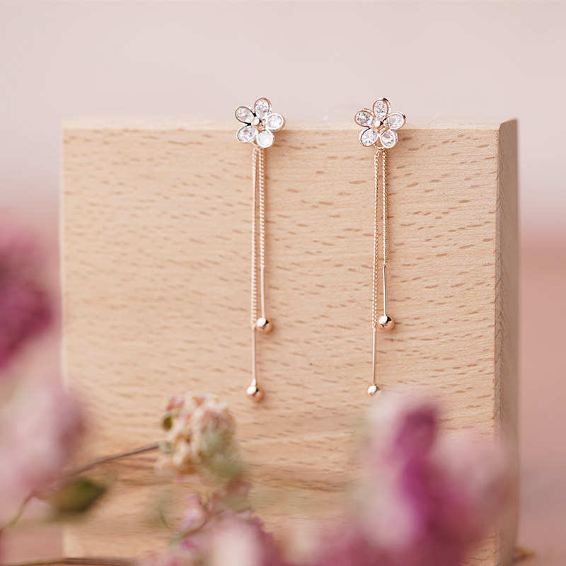 Simple scenery 925 sterling silver needle long temperament earrings female super fairy girl heart cherry blossom tassel ear needle exquisite