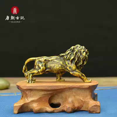 Copper lion ornaments solid pure copper casting African lion study table top copper decoration press paper vintage collection play
