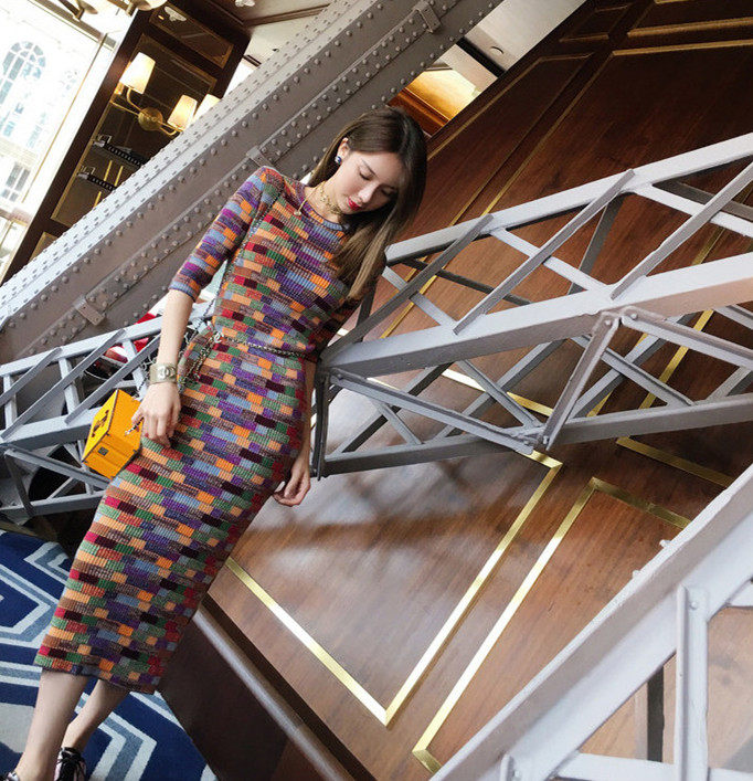 sandro moscoloni knitted dress 2022 spring and autumn new style slimming slim bag hip long skirt bottoming skirt