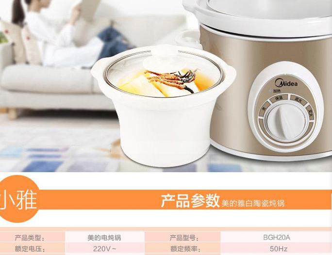Midea beautiful electric stew pot WBGH20A BGH20A 2L ceramic white porcelain original liner accessories porridge and soup