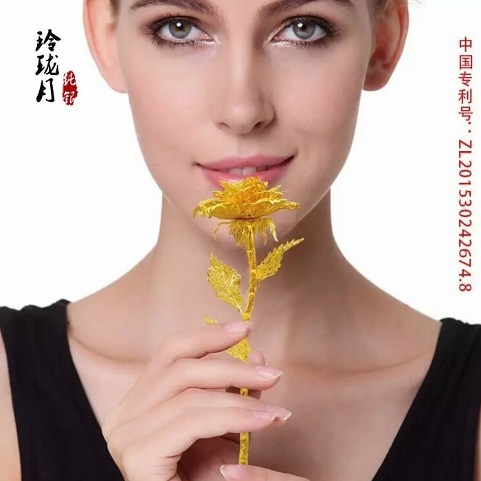 Valentine's Day Tanabata Gold Rose Ornament Gold Rose Bud 24K Sterling Silver Gold-plated Rose Lettering For Girlfriend