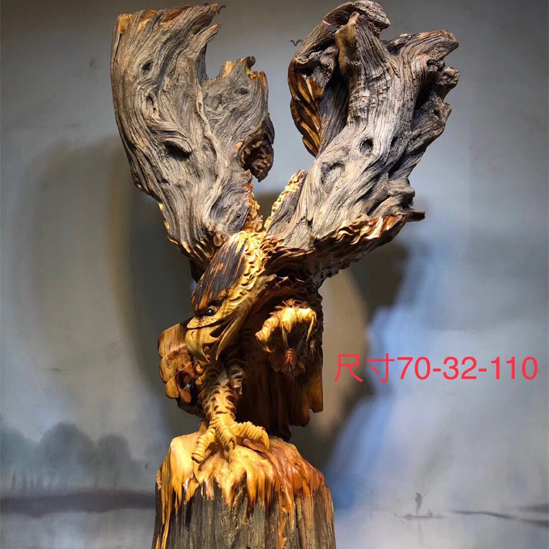 Root carving wood carving ornaments Cliff cypress pear wood Eagle grand exhibition Animal carving gift home opening craft gift decoration