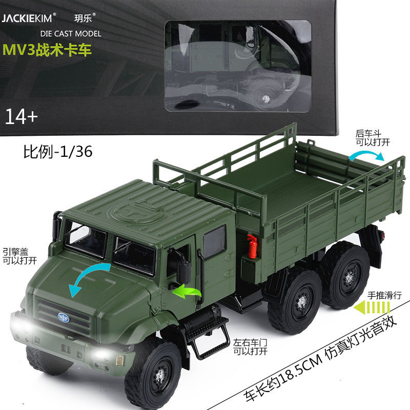 JK military model MV3 troop carrier truck armored vehicle alloy car model sound and light boy decoration metal model toy
